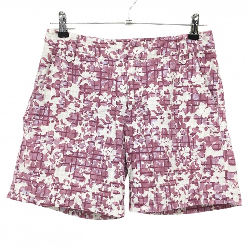 アシュワース ショートパンツ アイボリー×ピンク 花柄 チェック織生地 レディース M ゴルフウェア ASHWORTH(美品)/10%OFF価格