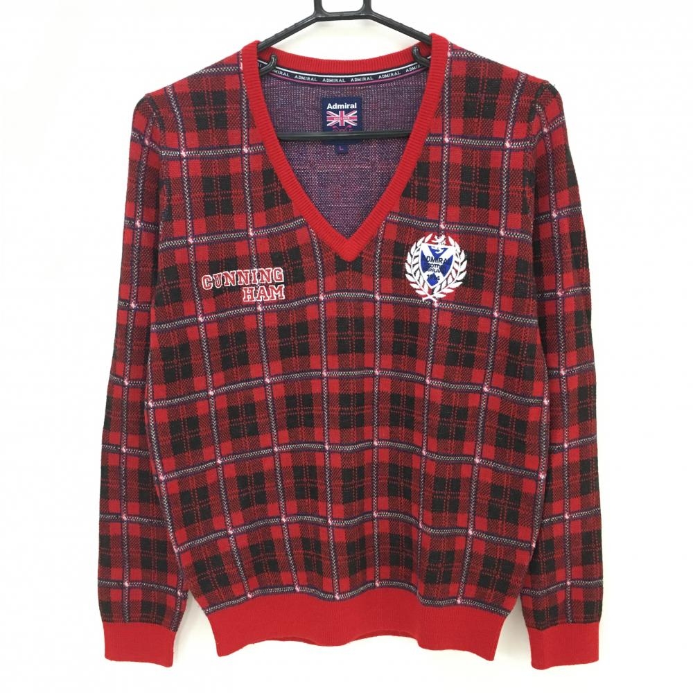 【超美品】アドミラル セーター レッド×黒 チェック Vネック レディース L ゴルフウェア Admiral