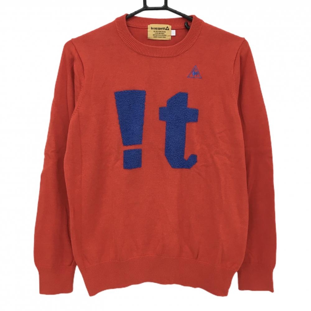 【美品】ルコックスポルティフ セーター レッド×ブルー ニット 一部パイル地 コットン混 レディース L ゴルフウェア le coq sportif