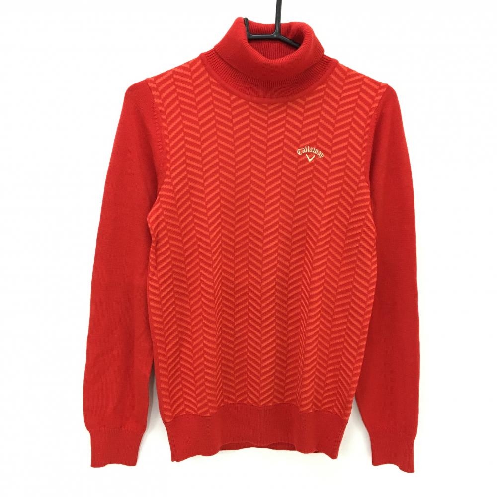【超美品】キャロウェイ タートルネックセーター レッド×オレンジ 身頃ヘリンボーン柄 ウール混 レディース L ゴルフウェア Callaway
