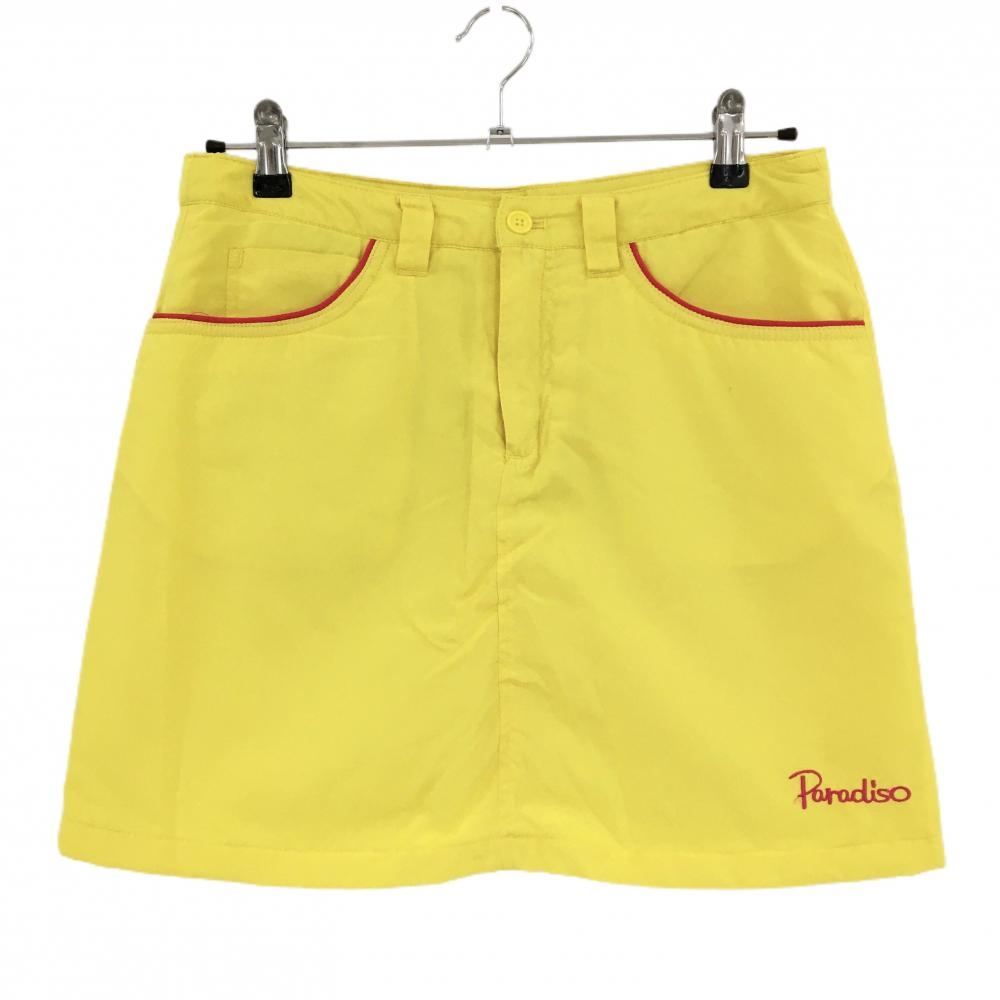パラディーゾ 中綿スカート イエロー ロゴピンク レディース L ゴルフウェア Paradiso