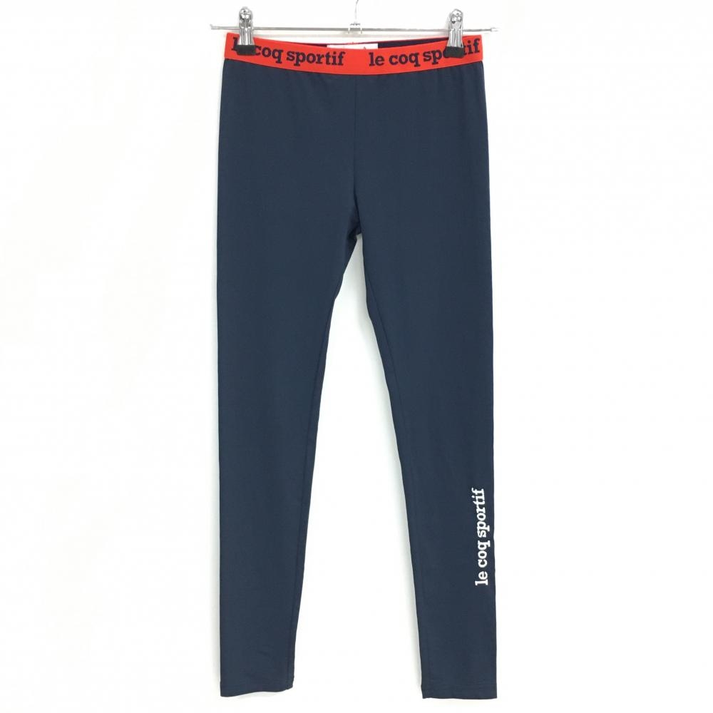 【超美品】ルコック レギンス ネイビー×レッド スパッツ ウエストロゴ レディース S ゴルフウェア le coq sportif