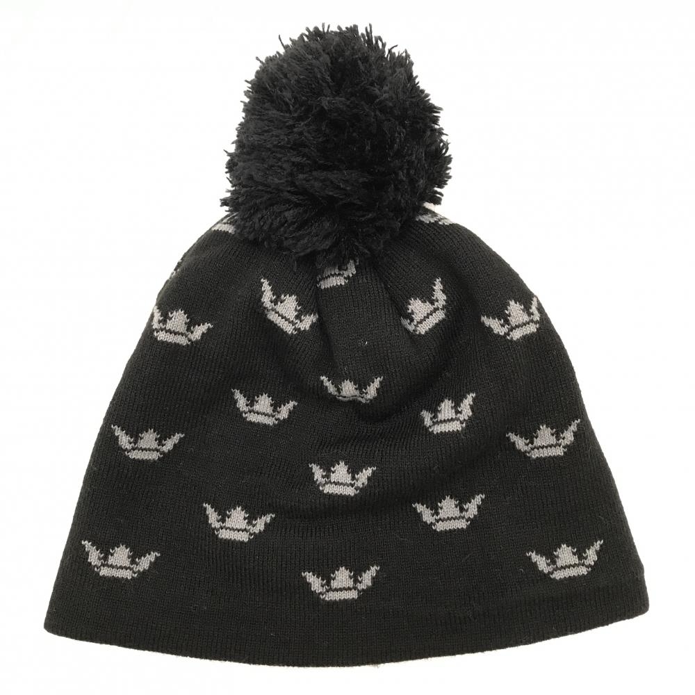 【超美品】キャロウェイ ニット帽 黒×グレー 総柄 ボンボン付 FR ゴルフウェア Callaway