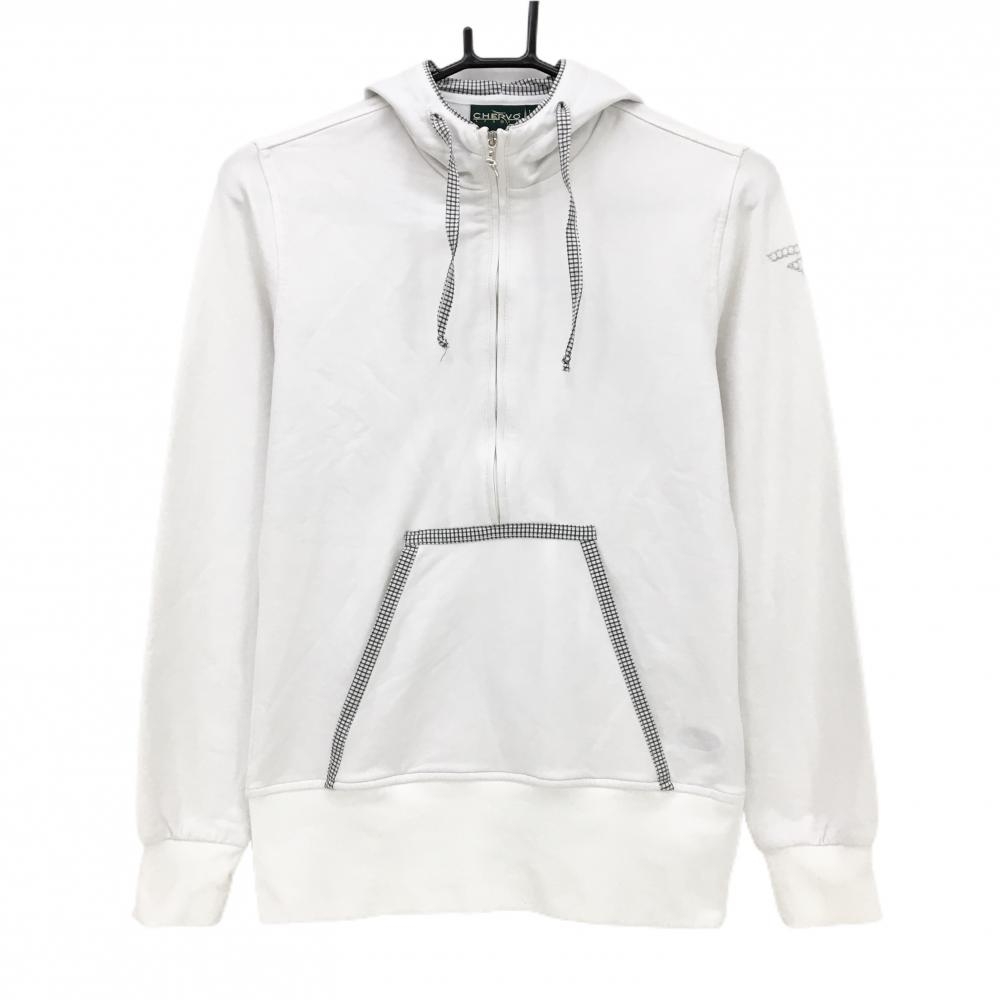 シェルボ パーカー 白×黒 一部チェック ハーフジップ レディース S ゴルフウェア CHERVO