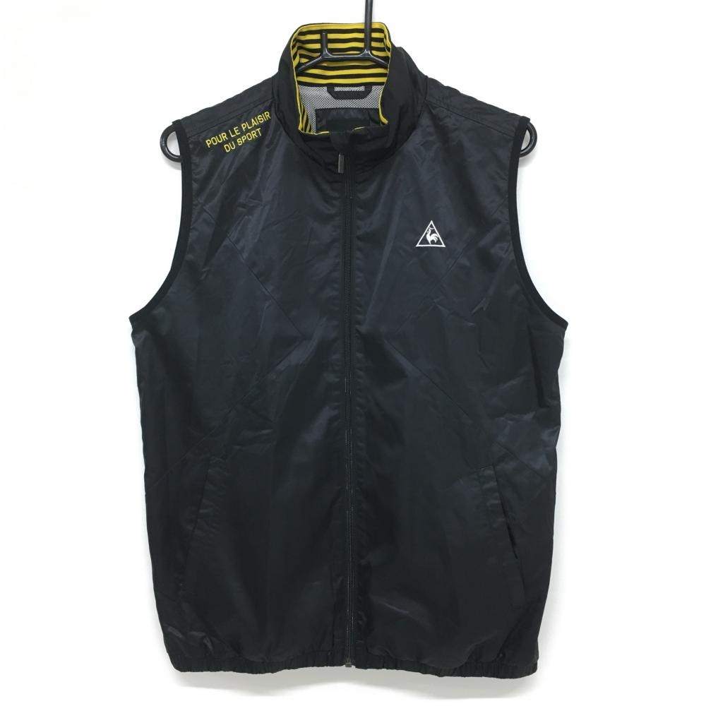 【美品】ルコックゴルフ アウターベスト 黒×イエロー 裏地メッシュ ロゴ刺しゅう メンズ L ゴルフウェア le coq sportif