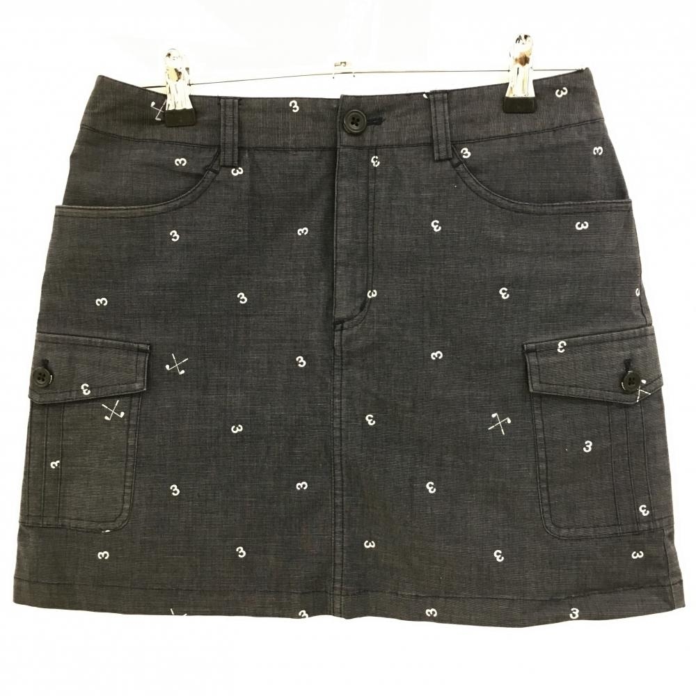 アディダス カーゴスカート ダークグレー×ライトグレー ナンバー総柄 バックロゴ刺しゅう レディース M/M ゴルフウェア adidas