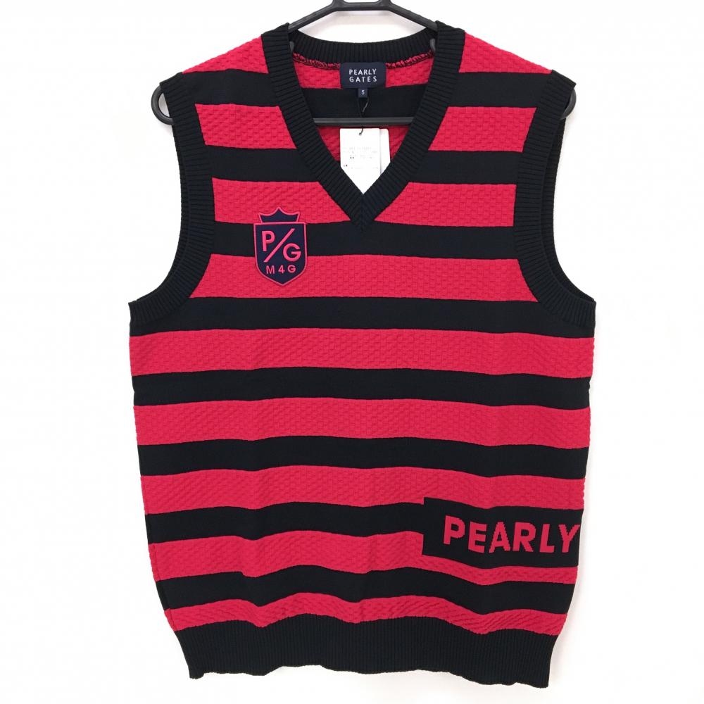 【新品】パーリーゲイツ ニットベスト ピンク×ダークネイビー 太ボーダー ブロックチェック編み メンズ 5(L) ゴルフウェア PEARLY GATES
