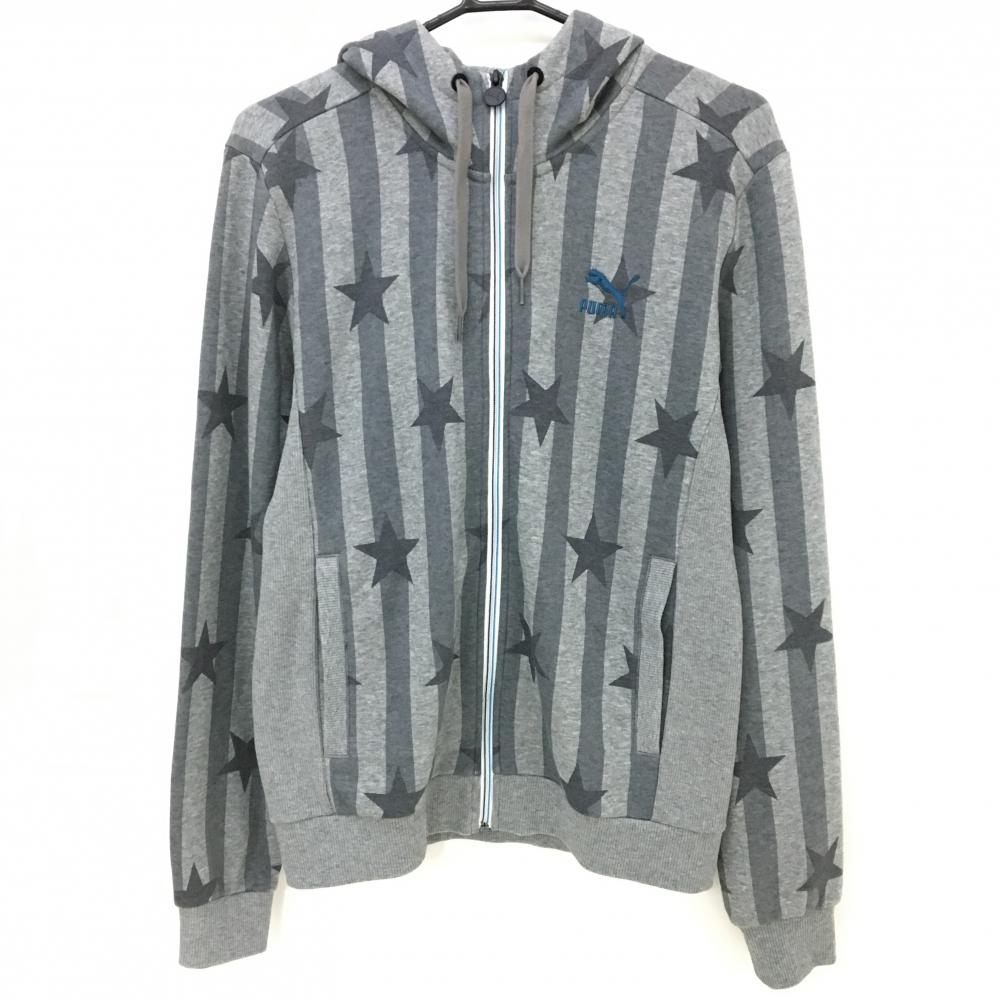 プーマ ジップパーカー グレー ストライプ 星柄 メンズ M ゴルフウェア PUMA