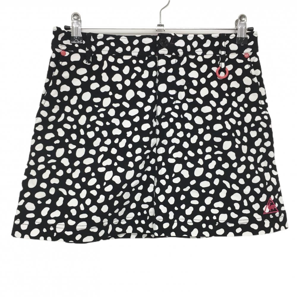 【超美品】ルコックゴルフ スカート 黒×白 総柄 ドット風 表微起毛 ロゴピンク レディース 9 ゴルフウェア le coq sportif