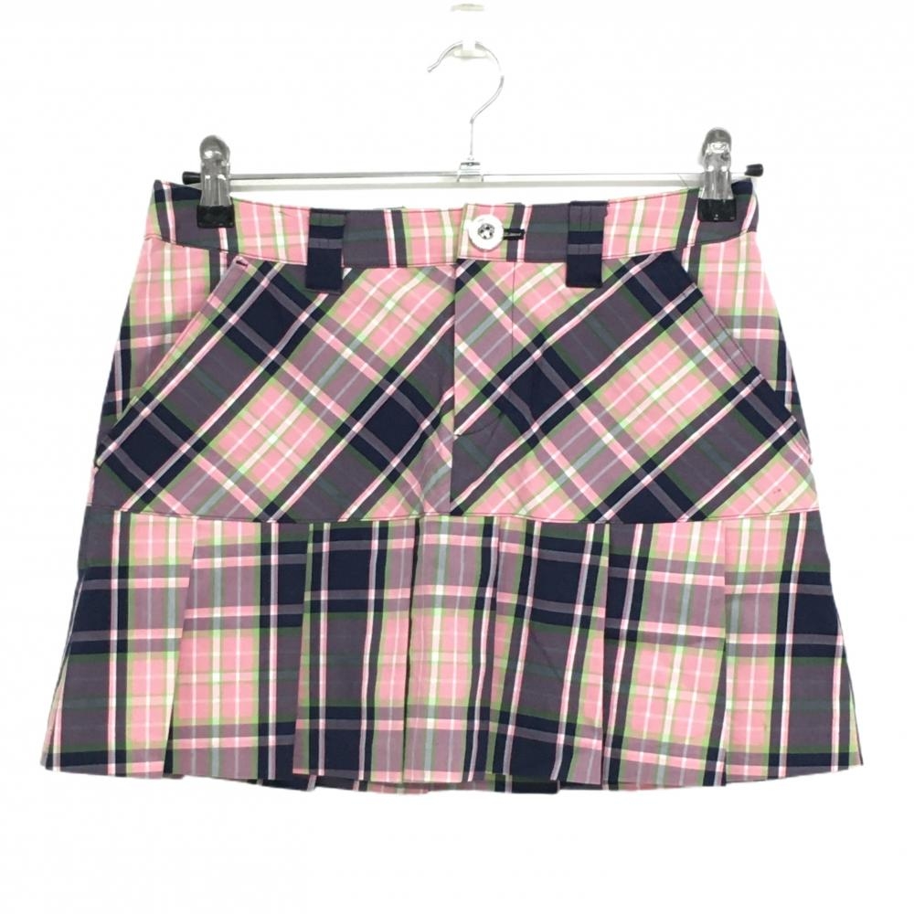 サマンサタバサUNDER25 プリーツスカート ピンク×ネイビー チェック柄 バックロゴ レディース M ゴルフウェア Samantha Thavasa