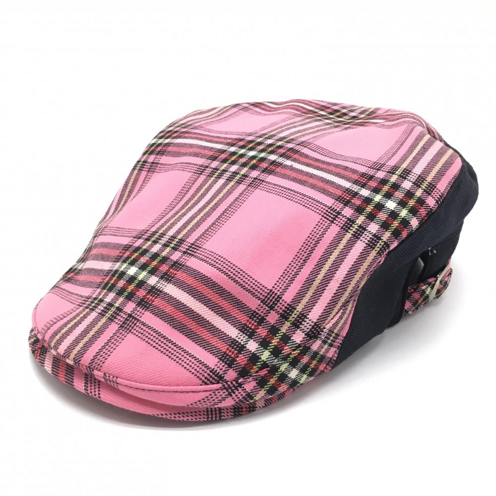 【美品】ビバハート ハンチング帽 ピンク×黒 チェック ゴルフウェア サンプル品 VIVA HEART