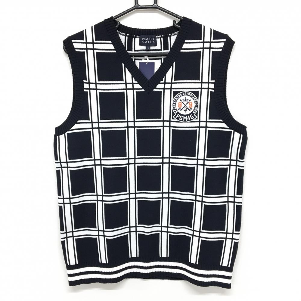 【新品】パーリーゲイツ ニットベスト ネイビー×白 Vネック 格子 メンズ 5(L) ゴルフウェア PEARLY GATES