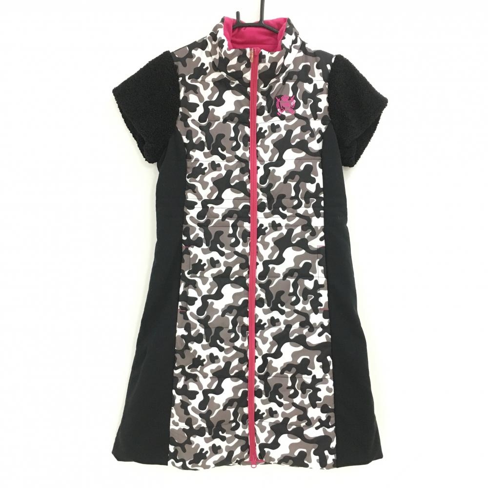 【新品】ビバハートreplie 中綿半袖ワンピース 黒×白 一部カモフラ 迷彩 袖ボア レディース 40(M) ゴルフウェア VIVA HEART
