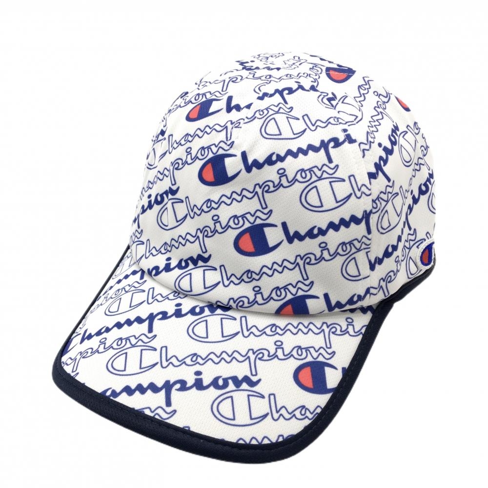 【新品】チャンピオン キャップ 白×ネイビー×レッド ロゴ総柄 速乾 UVカット レディース 55cm〜57cm ゴルフウェア Champion