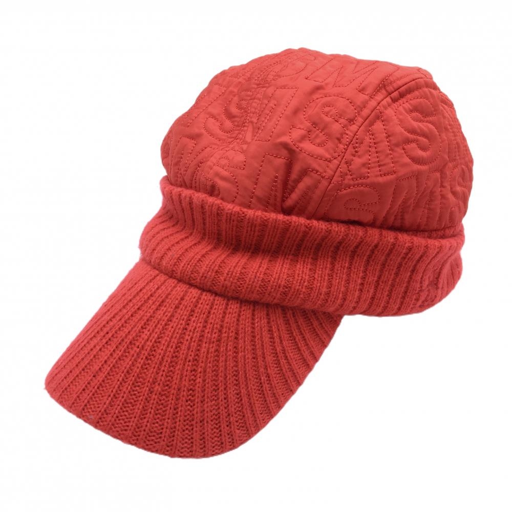 【美品】マンシングウェア 中綿入りつば付きニット帽 レッド クラウン中綿・英字柄 F(55-59cm) ゴルフウェア Munsingwear