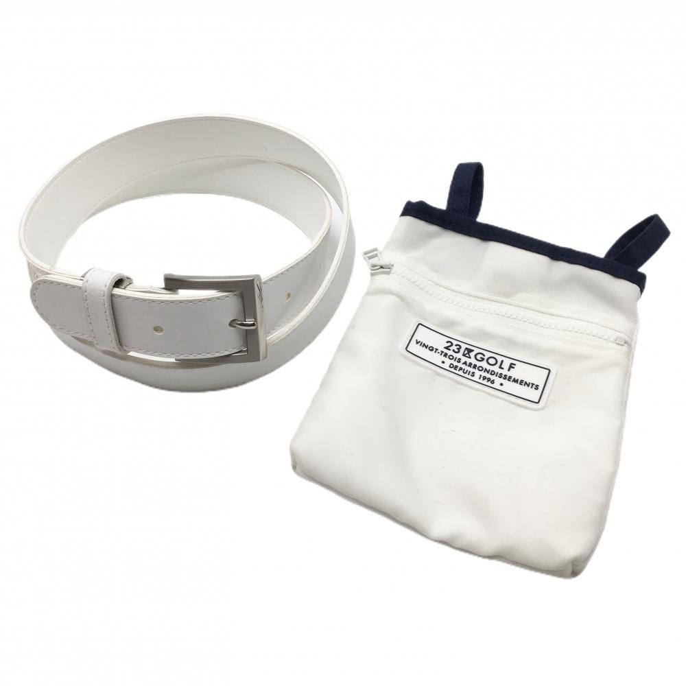 23区ゴルフ ポーチ付ベルト 白×ネイビー ポーチ取外し可 レディース ゴルフウェア 23区