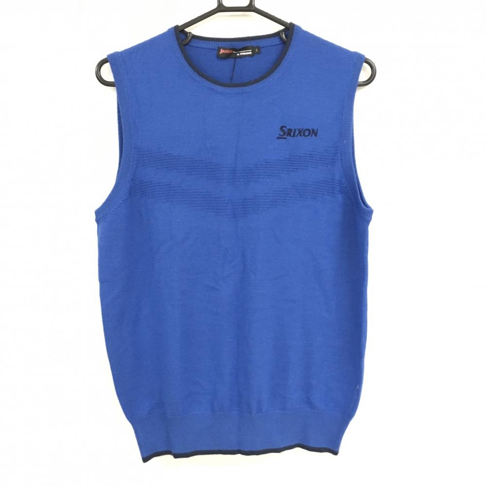 【新品】スリクソンバイデサント ニットベスト ブルー×ネイビー ロゴ刺しゅう ウール混 メンズ L ゴルフウェア SRIXON