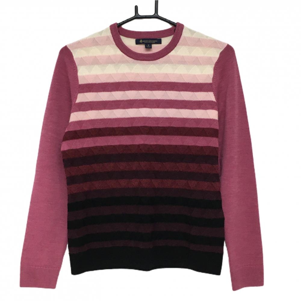 【超美品】ブルックスブラザーズ セーター ピンク×ボルドー系 ボーダー ウール100% ニット レディース M ゴルフウェア BROOKS BROTHERS