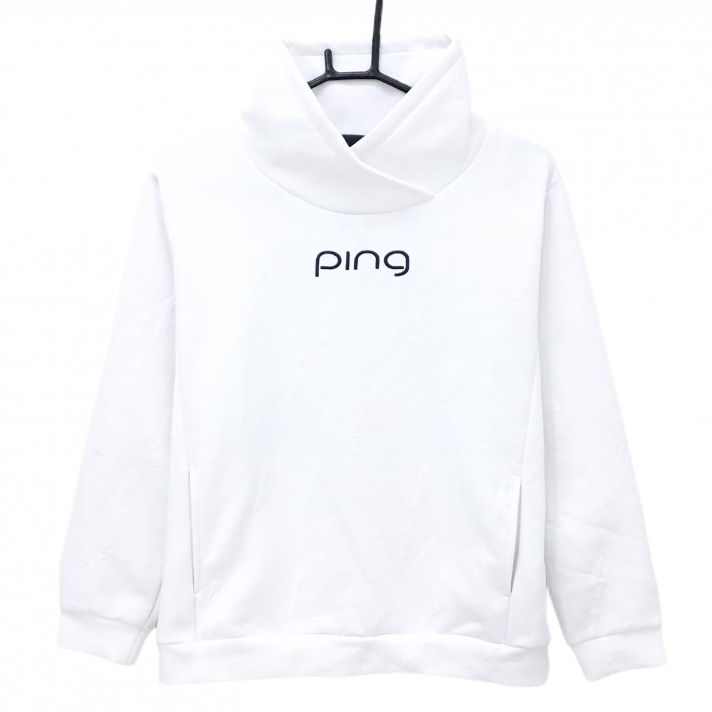 ピン ハイネックトレーナー 白 ロゴ総柄地模様 レディース M ゴルフウェア PING