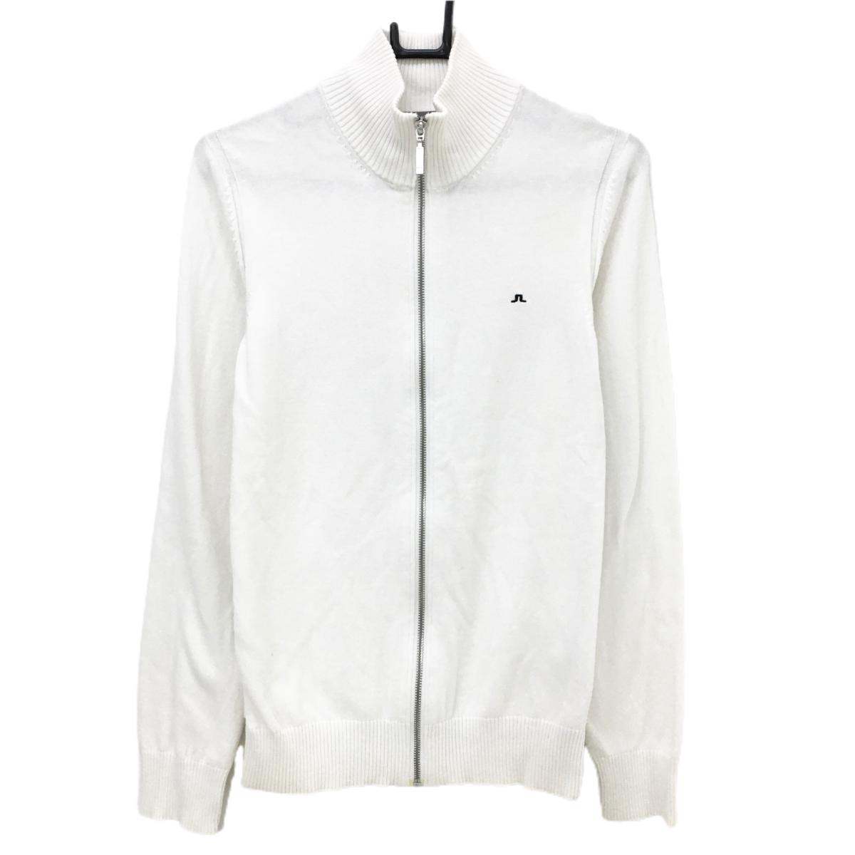 ジェイリンドバーグ ニットジャケット 白 ロゴ刺しゅう コットン100% メンズ S ゴルフウェア J.LINDEBERG