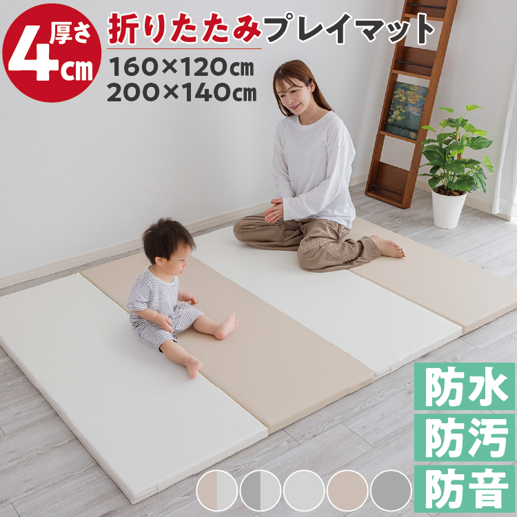 | 特徴 | ・音・衝撃・汚れにも安心な家族思いの多機能プレイマットです。 ・厚みのあるクッション素材でお子様の元気な足音やおもちゃが床とあたる音などを軽減し、二階建てのお家やマンションなどの集合住宅でも活躍します。 ・しっかりとした厚みが衝撃を抑えるので床の傷防止や怪我の軽減にも役立ちます。 ・広いスペースでの使用の際は複数のマットを並べて使用することも可能です。 ・カバーには高品質なPUレザーを使用しているので食べこぼしなどの汚れが染み込みにくく、さっと拭くだけでいつでも清潔に保てます。※完全防水ではありません。 ・表面に起毛が無いので掃除機掛けや拭き掃除も楽々です。 ・高密度のクッションを採用しているので底付き感が少なく、長時間座ってもお尻が痛くなりにくいので子供から大人まで快適にご使用いただけます。 ・遊びのスペース以外にもお昼寝やリビングでのラグ代わりとしてもお使いいただけます。 ・床から伝わる熱や冷気を遮断するのでシーズンを問いません。 ・ファスナーの金具を内側に収納できる仕様なので衣類の引っかかりやイタズラの心配もありません。 ・折りたたんでも厚さは約16cmとスリム設計なので収納時やお掃除の際にも場所を取らずノンストレスです。 ・畳んで椅子の代わりにしたり折り目を立ててトンネル遊びに使うなど様々な工夫をして楽しめます。 ・落ち着いたカラー展開でお部屋の雰囲気やお好みに合わせてお選びいただけます。 |