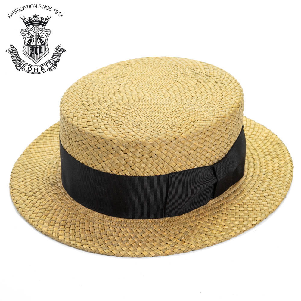 国内老舗帽子ブランドEDHAT(エドハット)の和ろうそくの芯として用いられるイグサの古来種「灯芯草」を使用したカンカン帽(ボーターハット)。