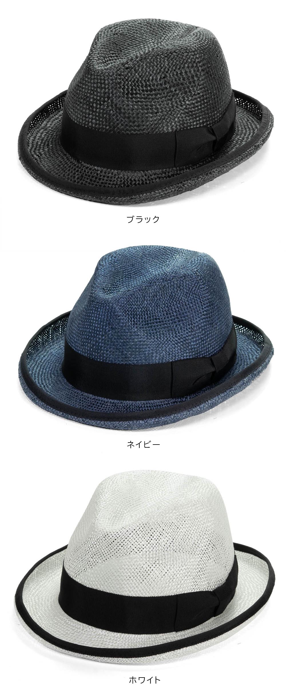 ストローハット メンズ 夏 ED HAT エドハット 天然草 ホンブルグハット ホワイト 白 16166466