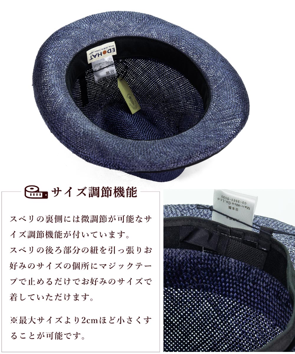 EDHAT(エドハット) 天然草 ケンマ草 ホンブルグ ストローハット