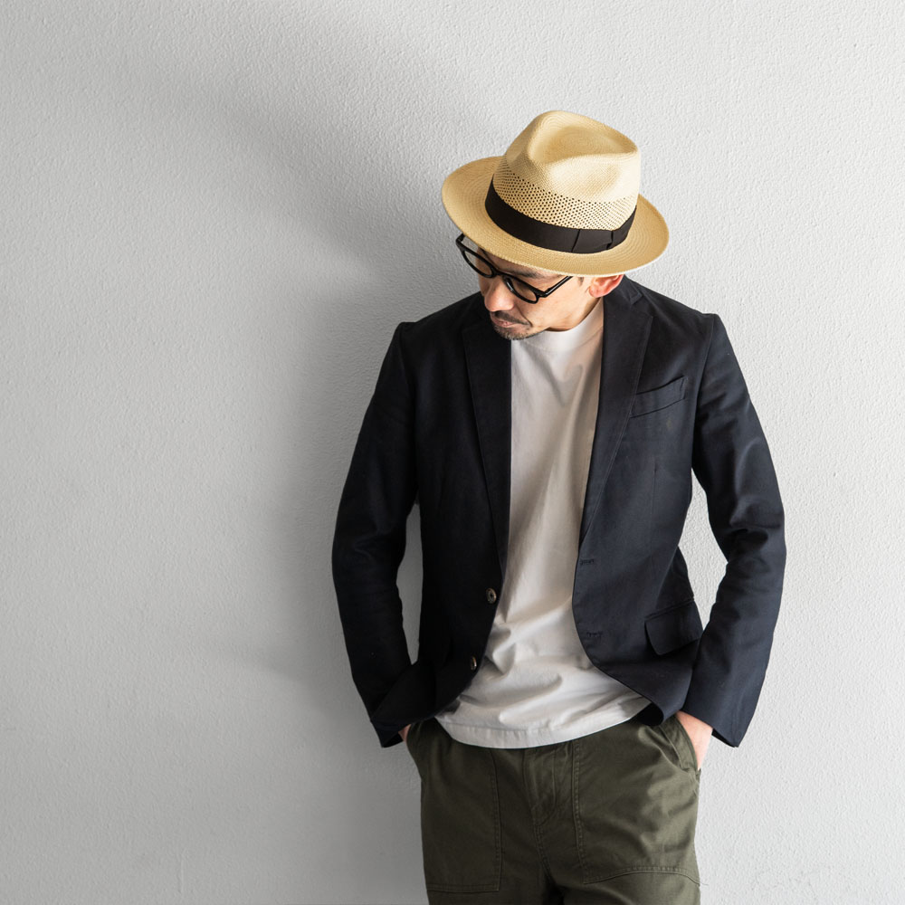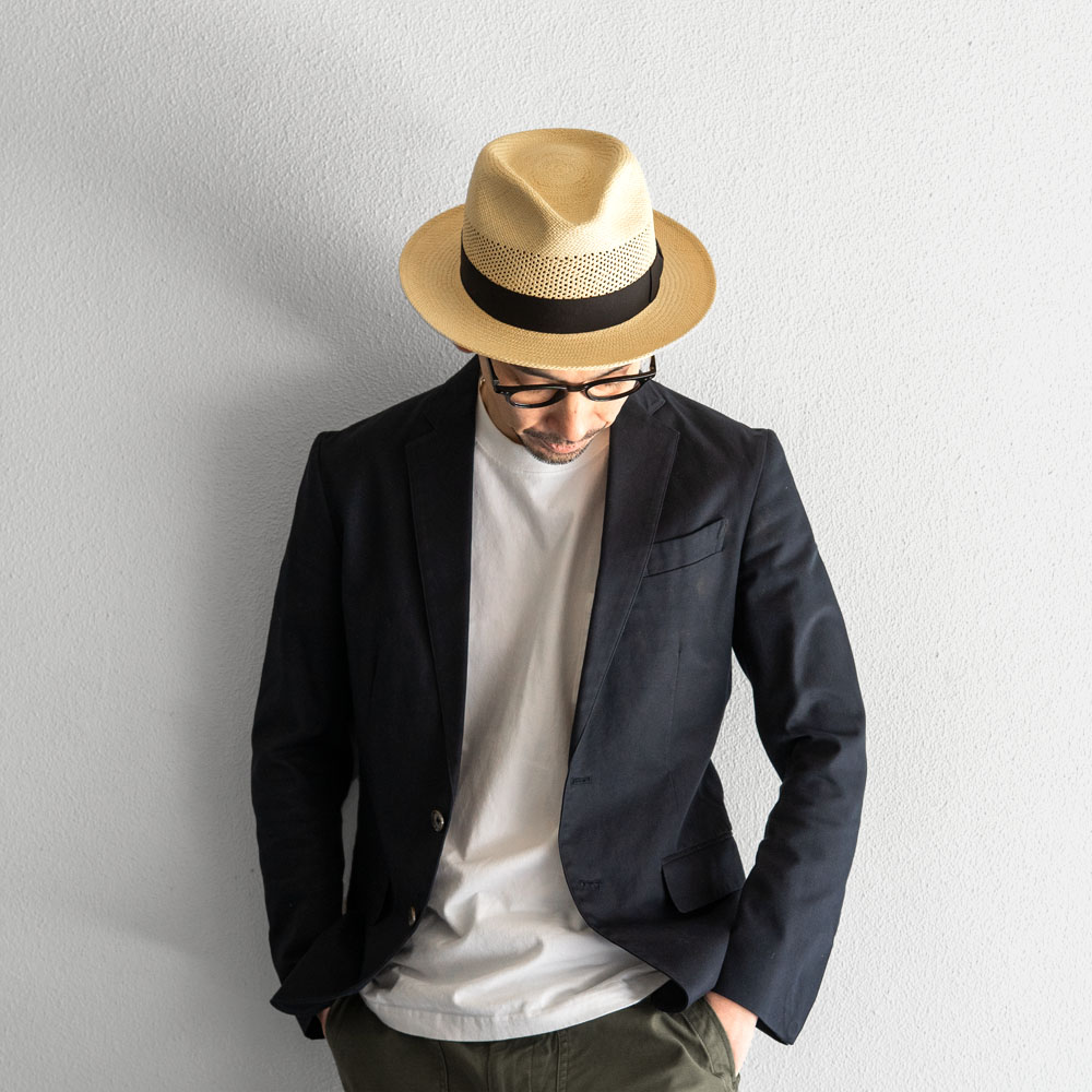春夏の紳士ハットの代名詞ともいえるパナマ(トキヤ草)素材を使用した高級感の漂う風合い。 折れ、引っ張りに強くコシのあるパナマ(トキヤ草)はストローハットの中でも強靭で型崩れしにくく、大切に扱うことで「10年は持つ」言われています。