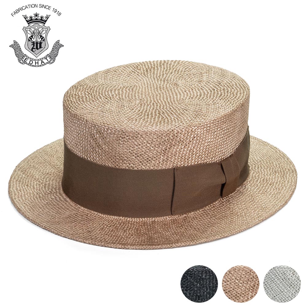 カンカン帽 メンズ 夏 ストローハット 大きいサイズ ボーターハット天然草 ケンマ草 EDHAT エドハット ブラック 黒 ベージュ グレー 日本製 16166526