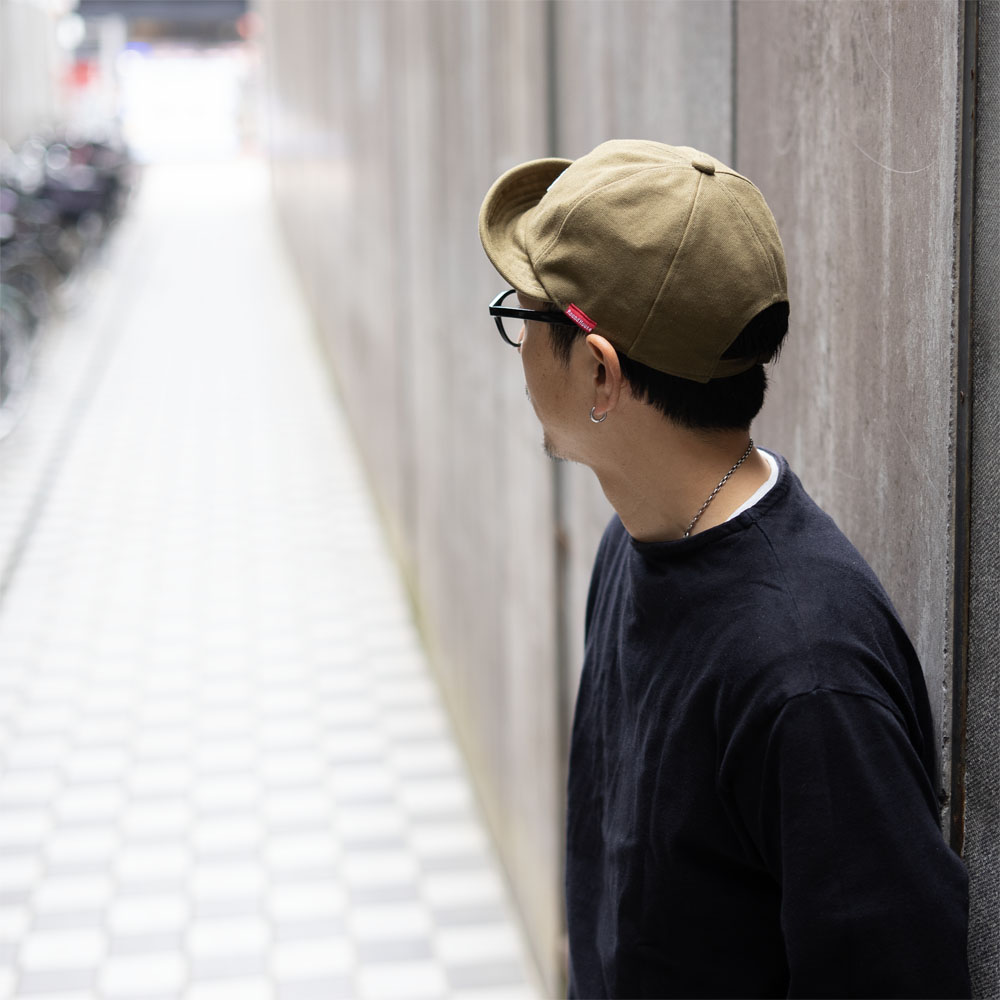 コットンキャンバス、デニム、ヒッコリーという、ベーシックな素材を使用。使い込むほどに風合いが増し、自分だけのキャップに育っていきます。シンプルなデザインなので、どんなコーディネートにも合わせやすく、Tシャツ、シャツ、ジャケットなど、あなたのいつものスタイルにすっと馴染んでくれます。そのタフで実用的な魅力が、日常使いにぴったりです。