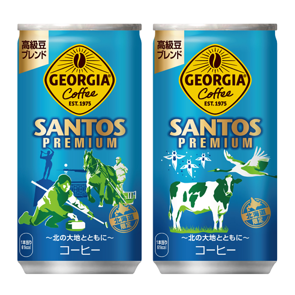 北海道限定『ジョージア サントスプレミアム』は、高級豆ブレンドによる、プレミアムな味わいのコーヒーです。