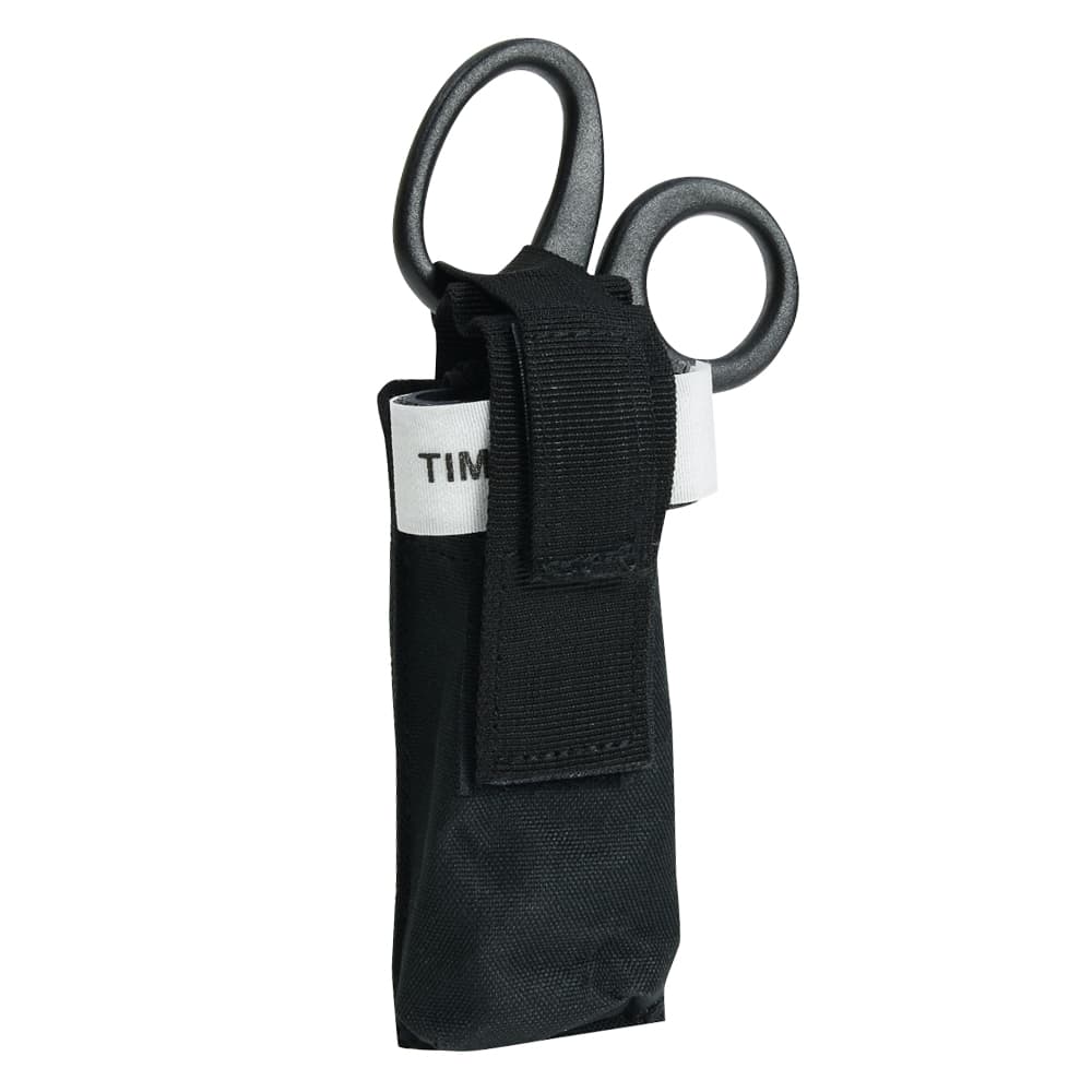 応急処置で最も重要で即時に使用を求められる止血帯と、衣類等を除去する医療専用ハサミに、それらをまとめて収納できるターニケットポーチの3つが揃ったメディカルキット。