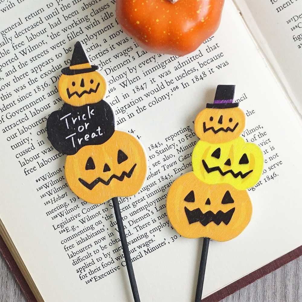 ハロウィン 木製 プレート ピック 3段カボチャ 2種セット 飾り オーナメント パンプキン かぼちゃ かわいい 雑貨