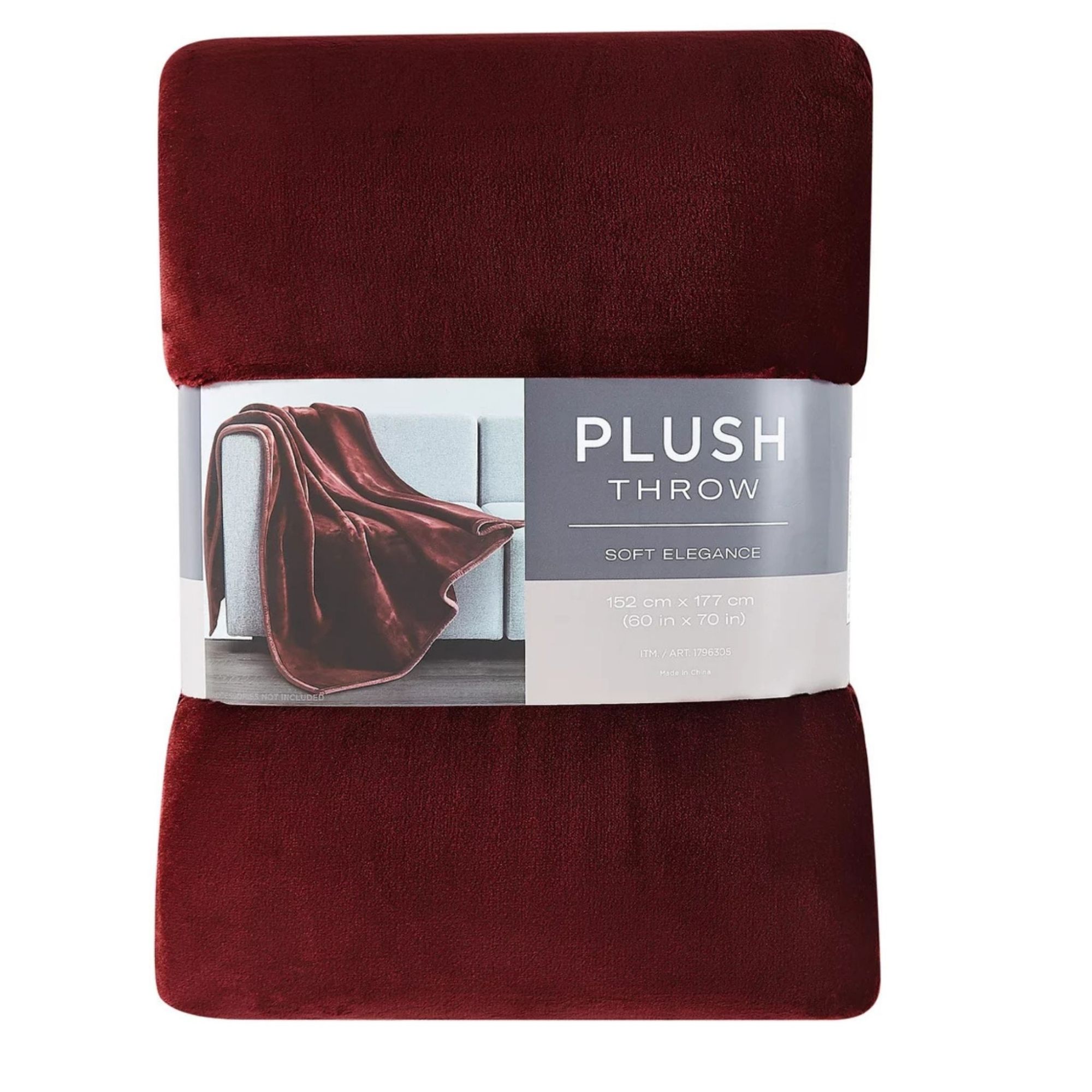 フランネル 大判ひざ掛け 152cm x 177cm ワイン 光沢のある滑らかな肌触りのブランケット