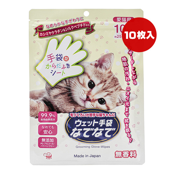 ウェット手袋 なでなで 10枚入 本田洋行 ▼a ペット グッズ 猫 キャット 手袋型からだふきシート 無香料 なめても安心 国産