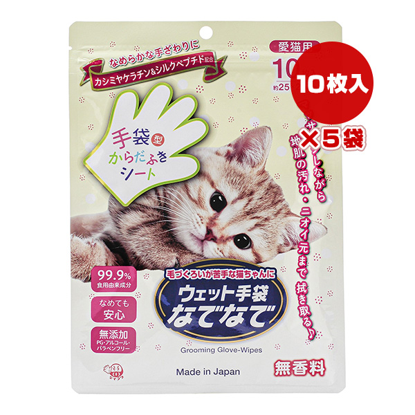 ウェット手袋 なでなで 10枚入×5袋 本田洋行 ▼a ペット グッズ 猫 キャット 手袋型からだふきシート 無香料 なめても安心 国産