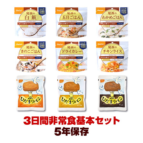 非常食 3日間基本セット 5年保存 非常食セット 9種類9食 アルファ米 パン 防災グッズ 保存食 送料無料
