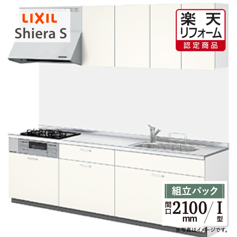| 商品名 | LIXIL リクシル シエラS Shiera S 扉グループ1 基本プラン I型【組立パック】 | | 間口 | 2100 mm | | 基本仕様 | ●トレーボード:シンク下・内引出し付、コンロ下・内引出し付、調理台下・棚板(調理台下の中断)/(ローラーレール・ダンパー付き) ●ウォールユニット・開き扉タイプ ●扉カラー:グループ1(ノールグリーン・ノールピンク・シルバーグレー・スムースホワイト・プレーンウォルナット・プレーンオーク・ラスティックアッシュ) ●取手:グループ1/ハンドル取手(ブラック・シルバー) ●ワークトップ:ステンレストップシルクエンボス ●奥行:65cm ●シンク:スキットシンク樹脂排水口 ●水栓:シングルレバー水栓クロマーレS・エコハンドル ●加熱機器:3口ガスコンロ ●レンジフード:NBH・シロッコファンタイプ(シルバー) ●食洗器なし(オプションでお付けできます)