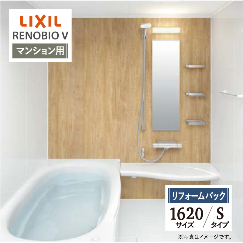 | 商品名 | LIXIL リクシル リノビオV 【マンション用】【リフォームパック】 | | 基本プラン | ●床:キレイサーモフロア単色(ホワイト) ●排水口:パッとくるりんポイ排水口 ●浴槽:材質/色-人工大理石 ルフレトーン(ホワイト)・形状/ミナモ浴槽(1116はアーチライン浴槽)・排水栓/プッシュワンウェイ排水栓(ホワイト)・保温/サーモバスS ●洗い場水栓:クランクレス水栓(メタルマット調) ●シャワー:エコアクアシャワー(メタル調-ホワイト) ●シャワーフック:フルフォールスライドバー(メタル調)(1080L) ●カウンター:まる洗いカウンター(ワイド)(ホワイト) ●ミラー:タテ長ミラー(30100) ●収納:収納棚180W(クリア)(3段) ●照明:スリムレクタ照明(電球色LED) ●タオル掛:タオル掛(メタル調) ●ドア:キレイドア折り戸(11段差)(800W×2000H)(Sホワイト) ●天井(天井高):内組平天井(廻し縁付)(天井高2025・壁高2000) ●壁パネル(全面張り):ハイクラス(鏡面ホワイト/HN301) | | タイプ | Sタイプ | | サイズ | 1620 | | 対応エリア | 東京・神奈川・埼玉・千葉・栃木県・・・全エリア 山梨県・静岡県・茨城県・・・一部地域 | | リフォームの流れ・保証内容 | ご注文から工事までの流れ・保証について、詳しくは【コチラ】から。 | メーカーへの お問い合わせ先 | ●LIXILお客様相談室(浴室) TEL:0120-376-837(LIXIL・サンウエーブ・INAX) TEL:0120-376-835(トステム) 受付時間 月〜金 9:00〜18:00 / 土日祝日 9:00〜17:00 (定休日 GW・年末年始・夏期休暇) ●LIXIL 公式HP・オンラインカタログから、商品の詳細情報をご覧になれます。 | | 注意事項 | メーカー都合による仕様変更・定価変更等の理由でページ情報が最新のものではない場合がございます。また、商品によって一部選択できないオプションもございます。 「ご利用ガイド」「ご注文からの流れ」をご確認のほどよろしくお願い致します。 詳細は個別お見積りにてご案内致します。予めご了承くださいますようお願い致します。 |