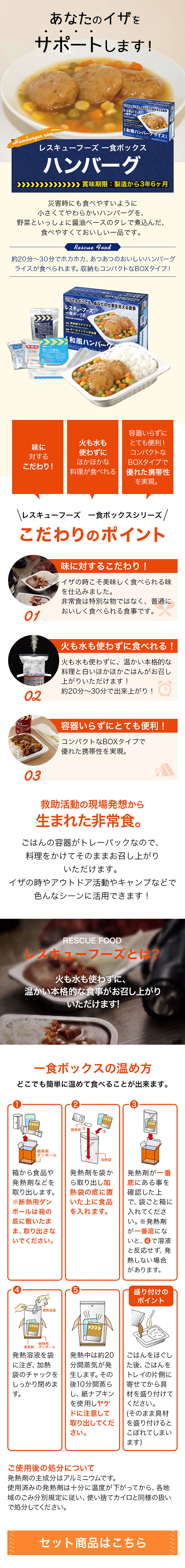 レスキューフーズ 一食ボックス 和風ハンバーグ 保存食 非常食 ホリカフーズ 災害食 防災グッズ 備蓄用品 備蓄品 備蓄 非常用 避難 震災 災害対策 地震対策