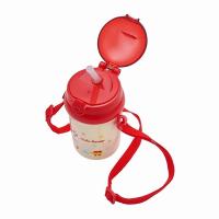【使用上のご注意】 ・肩ベルトを首にかけてふざけたり、肩ベルトを持ってふりまわさないでください。思わぬ事故につながります。絶対にしないでください。 ・熱い物を入れないでください。口内やけどをする場合があります。 ・ソーダ水等の炭酸飲料は絶対に入れないでください。水圧により漏れる場合があります。 ・車内等高温になる場所に長時間放置されると水筒内の空気が膨張し、中の飲料水が吹き出す場合がありますので、放置しないでください。 ・急激な温度変化を与えるとストロー内の気圧が変化し、飲料水が吹き出す場合がございます。ご了承ください。 ・完全密封ではありませんので、立てた状態でご使用ください。横にすると水漏れする場合があります。 ・バッグなどに入れて持ち運びの際は、必ずポリ袋などの防水性の袋に入れてください。 ・その他水漏れが起こった場合は、まずパッキンの有無、パッキン及び飲み口が正しく取り付けられているかをご確認ください。 ・パッキンはねじれがないように正しく取り付けてください。 ・ストロー、飲み口が詰まる場合がありますので、果肉入りの飲料水等を入れてのご使用は避けてください。 ・水筒内に飲料水を入れた状態で冷凍することは絶対にしないでください。 ・ご使用前には必ず洗浄してください。 ・フタはしっかり閉じて、中ブタはしっかりと締めてください。 ・フタを開けた状態で持ち運びをしないでください。(飲料水が漏れたり、破損等の原因になります。 ・プリント部分に油が付いた状態で高温下に放置するとプリントがはがれることがありますのでご注意ください。又油分を含んだ湯水の中に浸けないでください。 ・落としたり、強い衝撃が加わると破損することがありますのでご注意ください。 ・この製品は保冷タイプではありません。・火のそばに置かないでください。 ・手洗いをする場合はスポンジや柔らかい布に食器用洗剤をつけてぬるま湯で洗ってください。 ・アルカリ性洗剤又はオレンジオイル系洗剤は絵柄剥離、変色する事がありますので使用しないでください。 ・タワシ、みがき粉でみがかないでください。 ・フタを開ける際にストロー部に残った水滴が飛び散る恐れがありますので、ご注意ください。 ・漂白する時は、台所用塩素系漂白剤をご使用ください。過度の漂白は製品を早く傷めますので各漂白剤の使用方法に従ってください。 ・フタの漂白、薬液消毒はしないでください。金属部分を侵され腐食していまいます。 ・金属部分のサビの原因になりますので、早めの乾燥をおすすめします。 ・電子レンジでのスチーム消毒はお避けください。 ・薬液消毒はベビー用の消毒液を使用し、各消毒液の使用方法に従ってください。 ・アルコール消毒はお避けください。絵柄が色落ちしたり、製品が変形したりすることがあります。 ・歯で強く噛むと飲み口のゴムが破損するおそれがあります。