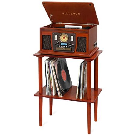 Victrola 8-in-1 Bluetooth Record Player & Multimedia Center, Built-in Stereo Speakers - Turntable, Wireless Music Streaming with Stand, Real Wood | M