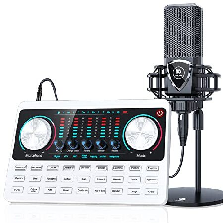 説明: tenlamp V10 soundboard streaming microphone bundle set is exactly what you need when you want to get starting your podcast, radio shows, or Twitch streams off the ground easily but are not sure what gear to buy. V10 sound card simplifies the content-creating process by integrating several digital audio mixing equipments functions into one comprehensive solution at an extremely affordable budget. Perfect for use in any room to record or broadcast live. It delivers superb sound quality and offers intuitive and full control that suits the needs of both beginners, ntermediate podcast and seasoned broadcasters. It is so easy to use, and PLUG and PLAY, that you can take your step into podcasting or streaming without experience within minutes. Ideal for Podcast, YouTube live, Facebook, Periscope, Twitter, Livestream, Twitch, TikTok, Vlogging, Recording, Broadcast...