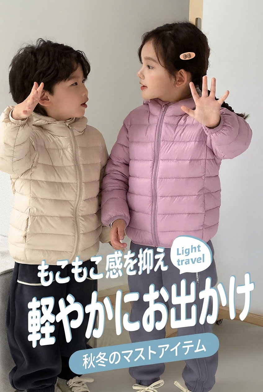 キッズ ダウンジャケット、子供用 アウター、軽量 ジャケット、防寒 コート、キッズ 秋冬、男女兼用 キッズ、フード付き ジャケット、子供服 冬、キッズ 防寒、通園 通学 アウター