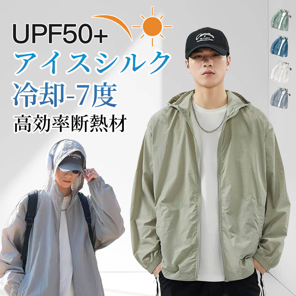 【新作】冷感パーカー メンズ アイスファブリック UVカット ジャケット 接触冷感 涼感 通気性 軽量 通勤 通学 日焼け対策 アウトドア 夏服 UPF50+
