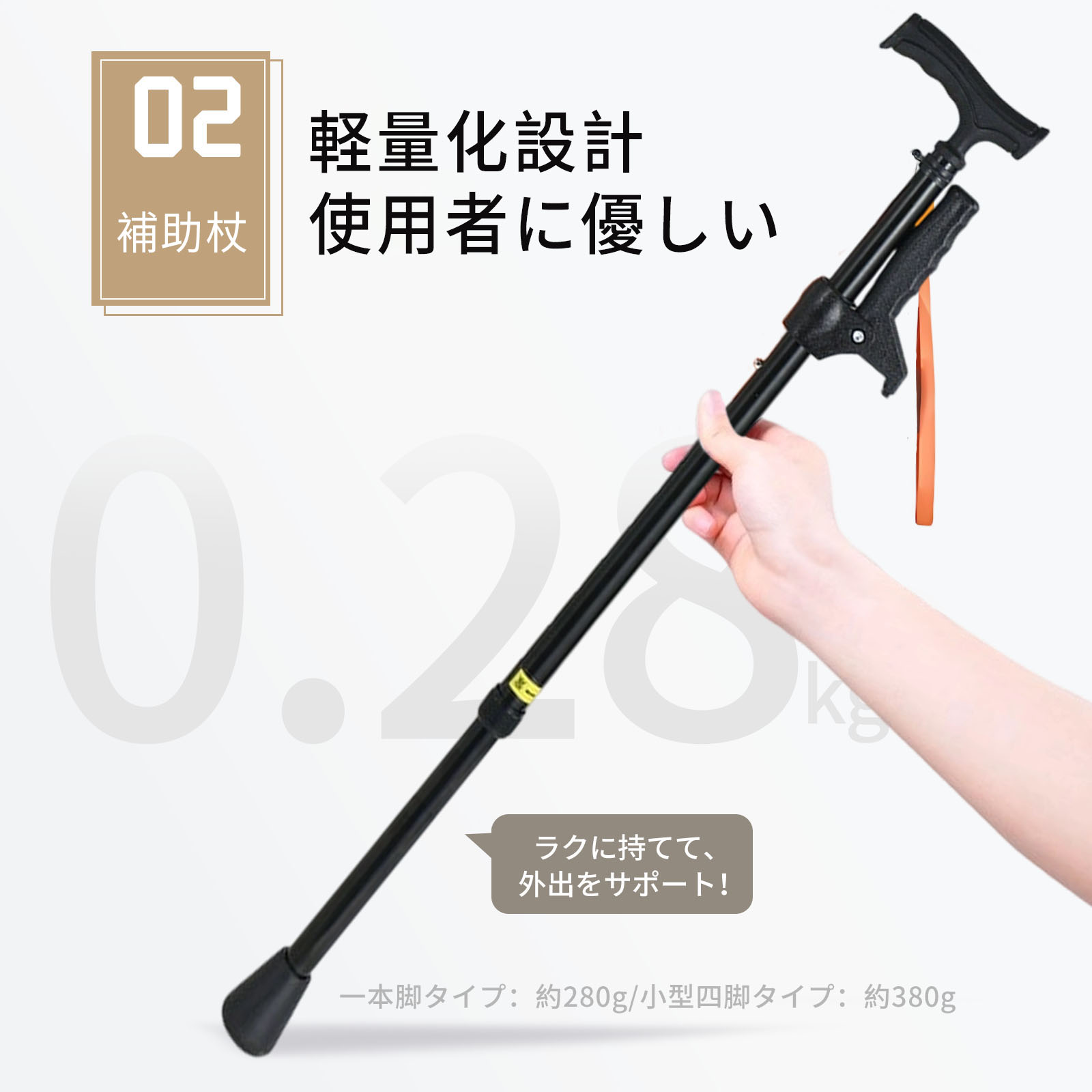 人間工学に基づいた構造で長時間使用しても疲れにくく、安全に歩行をサポートします。