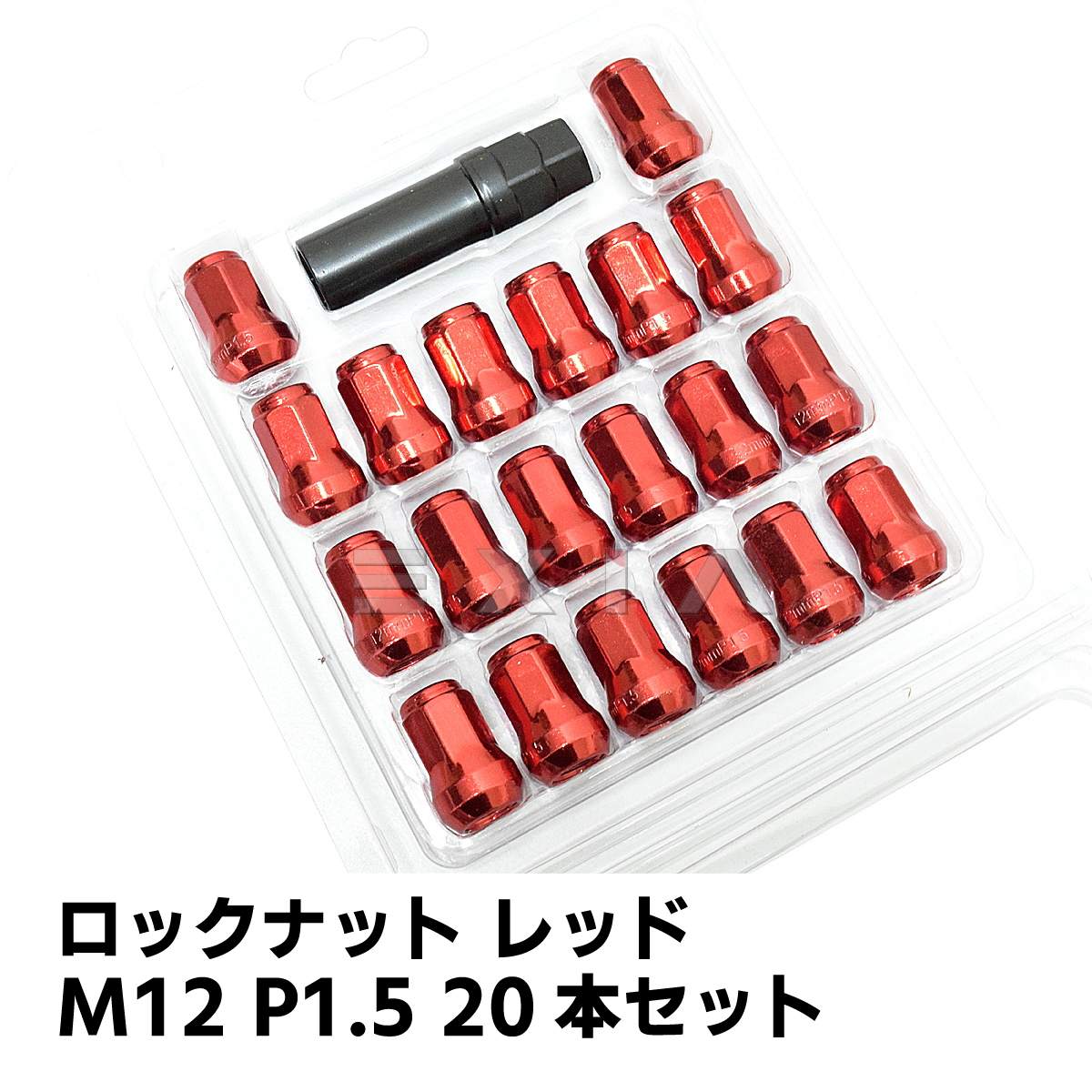ロックナット ホイールナット 20本 1台分 専用ソケット付 M12 P1.5 非貫通型 袋型 レッド 赤 カラーナット アルミホイール★国内発送 爆買★