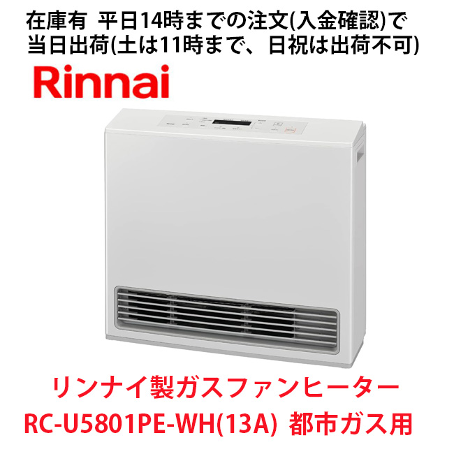 在庫有 平日14時までの注文(入金確認)で当日出荷(土曜は11時まで、日祝除く) リンナイ RC-U5801PE-WH(13A) ガスファンヒーター 都市ガス用