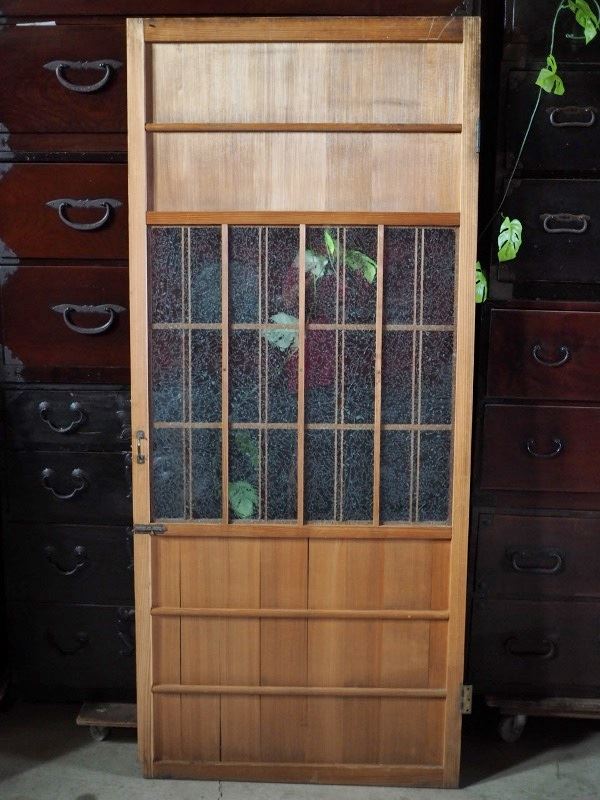 古いガラスドア 扉 リフォーム素材 ガラスひび有 昭和初期 古録展 配送不可店頭渡しのみ 中古 品番K2129
